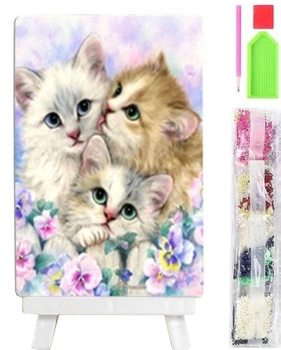 DIAMENTOWA 15X20 CM MOZAIKA KOTKI*3 W KWIATACH +SZTALUGA PAK 200