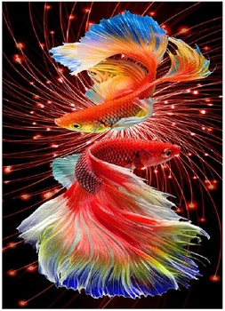 Diamentowa Mozaika Dwie Czerwone Ryby Haft Kreatywny 30x40 Cm