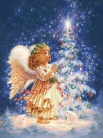 Diamentowa Mozaika Haft Aniołek Z Choinką Pierwsza Gwiazda 30x40 Cm