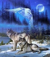 Diamentowa Mozaika Dwa Wilki I Sowa Nocą 30x40Cm Kreatywne Diamenty