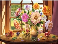 Diamentowa Mozaika Bukiet Kwiatów Astry Na Parapecie 30x40 Cm Kreatywne