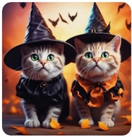 Diamentowa Mozaika Koty W Kapeluszach I Kubrakach Jesień Halloween 30x40 Cm