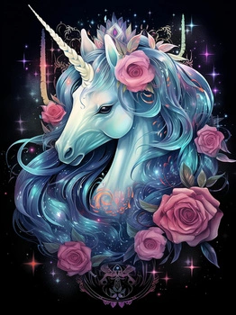 Diamentowa Mozaika Jednorożec Portret W Różach Haft Kreatywny 30x40 Cm