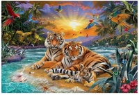 Diamentowa Mozaika Haft Diamentowy Tygrysia Rodzina 30x40cm