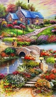 Diamentowa Mozaika Dom Sielska Osada Z Rzeką Haft Kreatywny 80x40 Cm