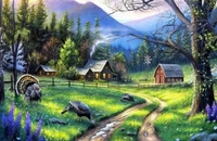 Diamentowa Mozaika Dom W Lesie Z Indykami Haft Kreatywny 80x40 Cm