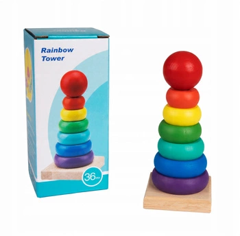 Drewniany Wózek Z Piramidkami Różne Kształty Zabawka Montessori