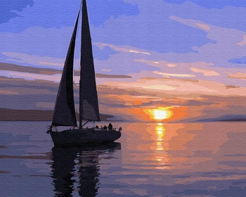 Malowanie Po Numerach Żaglówka Na Oceanie O Zachodzie Słońca 50X40 Z Ramą