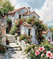 Malowanie Po Numerach Dom Na Przedmieściach Na Tle Kwiatów 50x40 Z Ramą