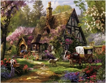 Malowanie Po Numerach Bryczka Na Tle Domu I Ogrodu 50x40 Z Ramą
