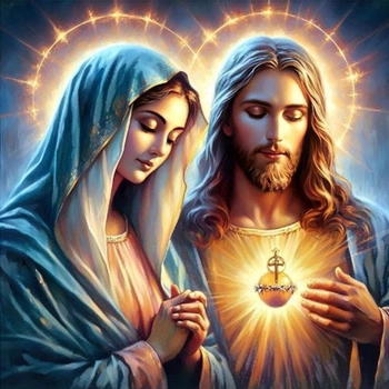 Diamentowa Mozaika Haft Kreatywny Jezus I Maryja Serce W Koronie 30x40 Cm