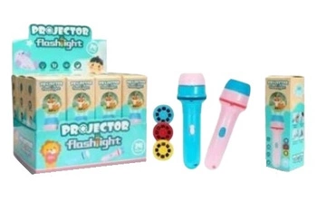 LATARKA-PROJEKTOR 2 W 1 NIEBIESKO-RÓŻOWE, pak 48 ręczna latarka z wmontowaną opcją projektora, trzy klisze, 24 obrazki, baterie załączone. display 12, wymiary display: 15,3 x 11,5 x 17,5 cm wymiary opakowania: 11,5 x 3,7 x 3,7 cm