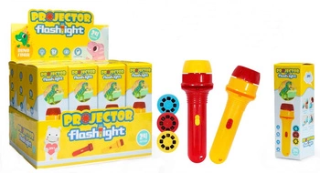 LATARKA-PROJEKTOR 2 W 1, pak 576 ręczna latarka z wmontowaną opcją projektora, trzy klisze, 24 obrazki, baterie załączone. display 12, wymiary display: 15,3 x 11,5 x 17,5 cm wymiary opakowania: 11,5 x 3,7 x 3,7 cm