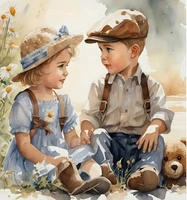 Diamentowa Mozaika Haft Kreatywny Dziewczynka I Chłopiec Na Łące 30x40 Cm