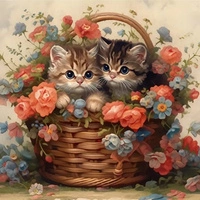 Diamentowa Mozaika Haft Diamentów Para Kociaków W Koszu Z Kwiatami 30x40 Cm