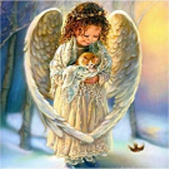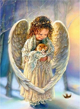 MALOWANIE PO NR. DZIEWCZYNKA ANIOŁEK Z KOTKIEM ZIMĄ PAK 15 40X50 CM