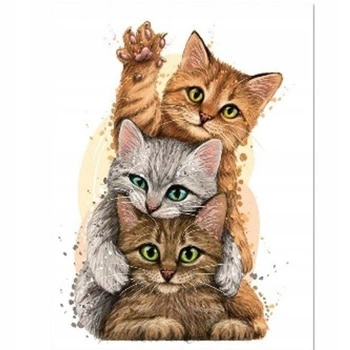 Diamentowa Mozaika Haft Kreatywny Trzy Kotki Tworzące Piramidkę 30x40