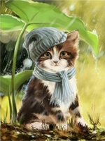 Diamentowa Mozaika Haft Diamentowy Kotek W Czapeczce 30x40cm