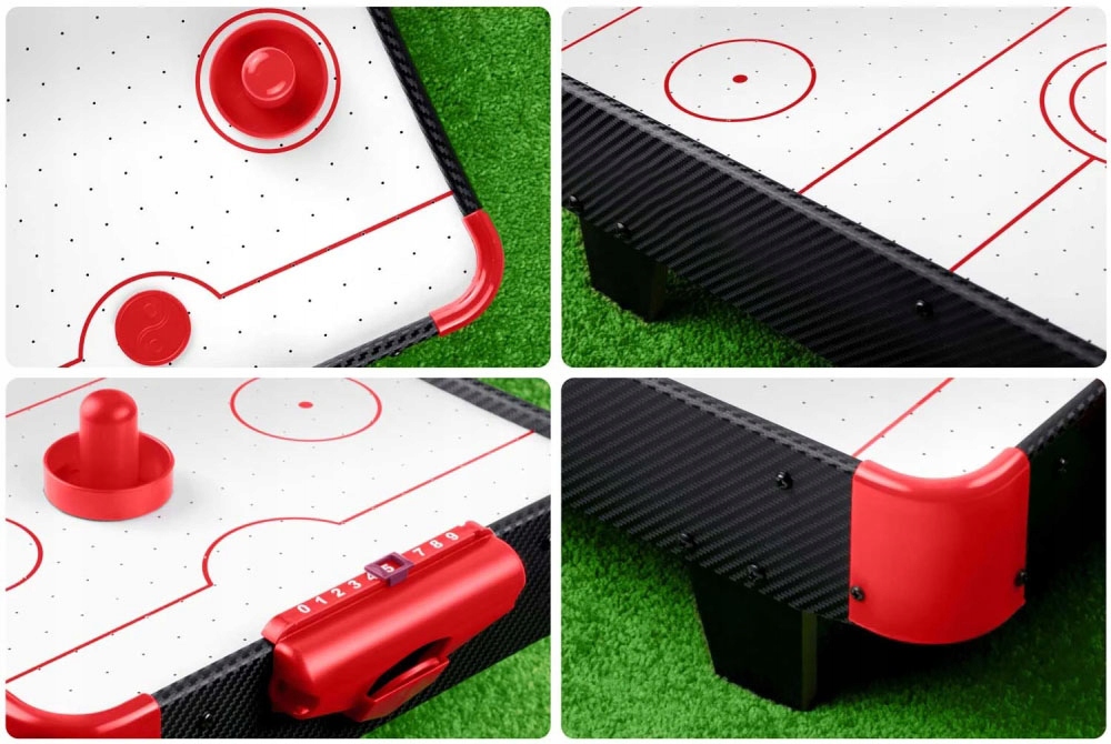 Powierzchnia stołu została wykonana tak, aby zapewnić płynne przesuwanie się krążków, co gwarantuje sprawiedliwą i wciągającą grę. Solidna konstrukcja oraz stabilne nóżki sprawiają, że stół zachowuje stabilność nawet podczas najbardziej emocjonujących pojedynków. Dzięki prostym zasadom Air Hockey to gra, która rozwija refleks, spostrzegawczość i uczy zdrowej rywalizacji.