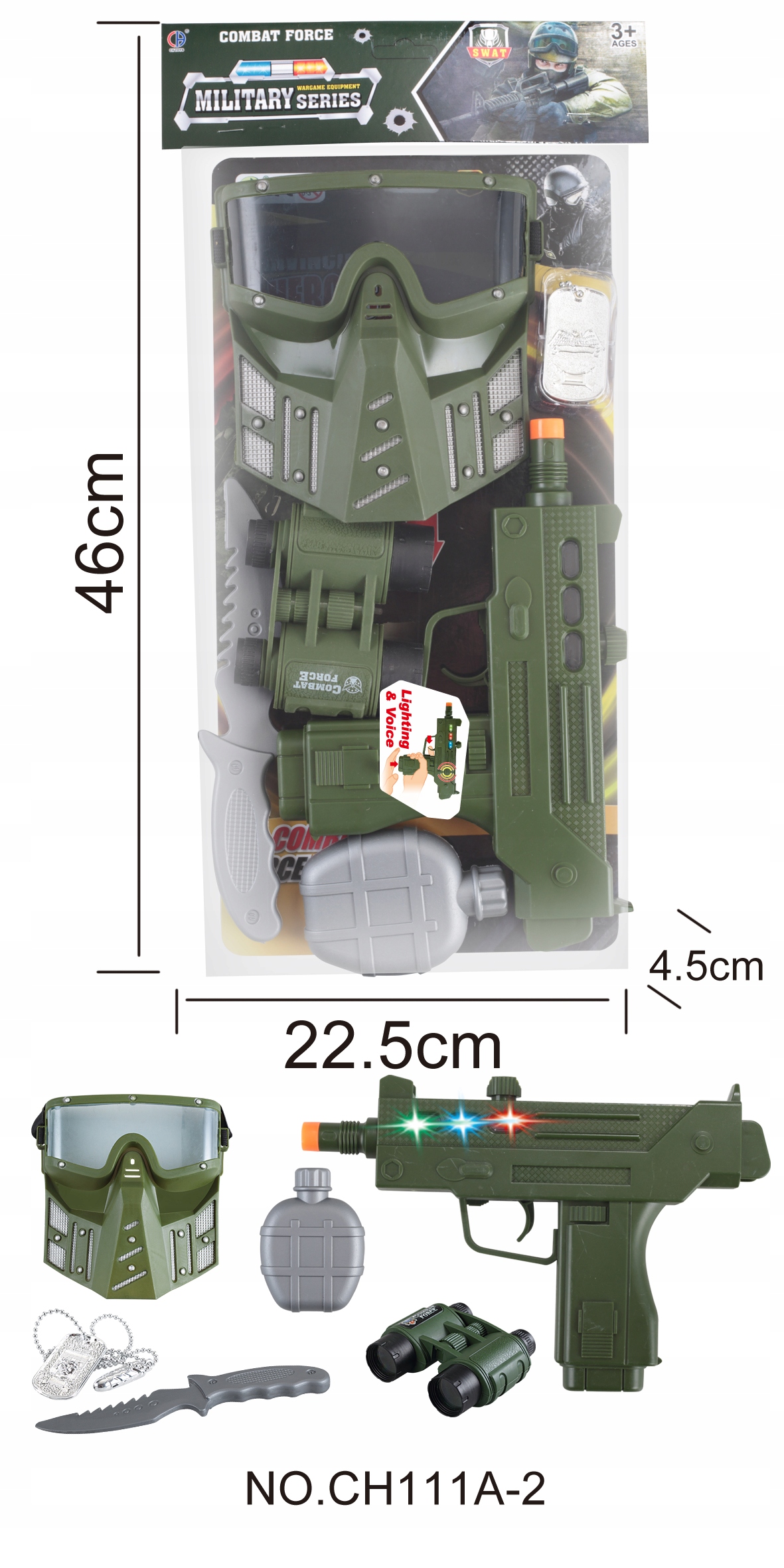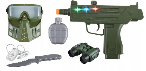 Przygotuj swojego małego żołnierza do akcji z zestawem dodatków do stroju żołnierza! Ten wyjątkowy komplet zawiera wszystko, co potrzebne, by poczuć się jak prawdziwy bohater na polu walki. W skład zestawu wchodzą: