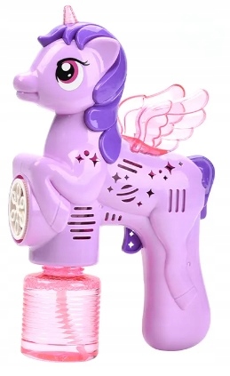 Aparat do Baniek Jednorożec Uskrzydlony to magiczna zabawka, która oczaruje każde dziecko i wprowadzi je w świat kolorowych baniek mydlanych. Kształt uroczo stylizowanego jednorożca z delikatnymi, przezroczystymi skrzydłami przyciąga uwagę i pobudza wyobraźnię, zachęcając do kreatywnej zabawy zarówno w domu, jak i na świeżym powietrzu. Fioletowy korpus i subtelne detale nadają całości bajkowego uroku.