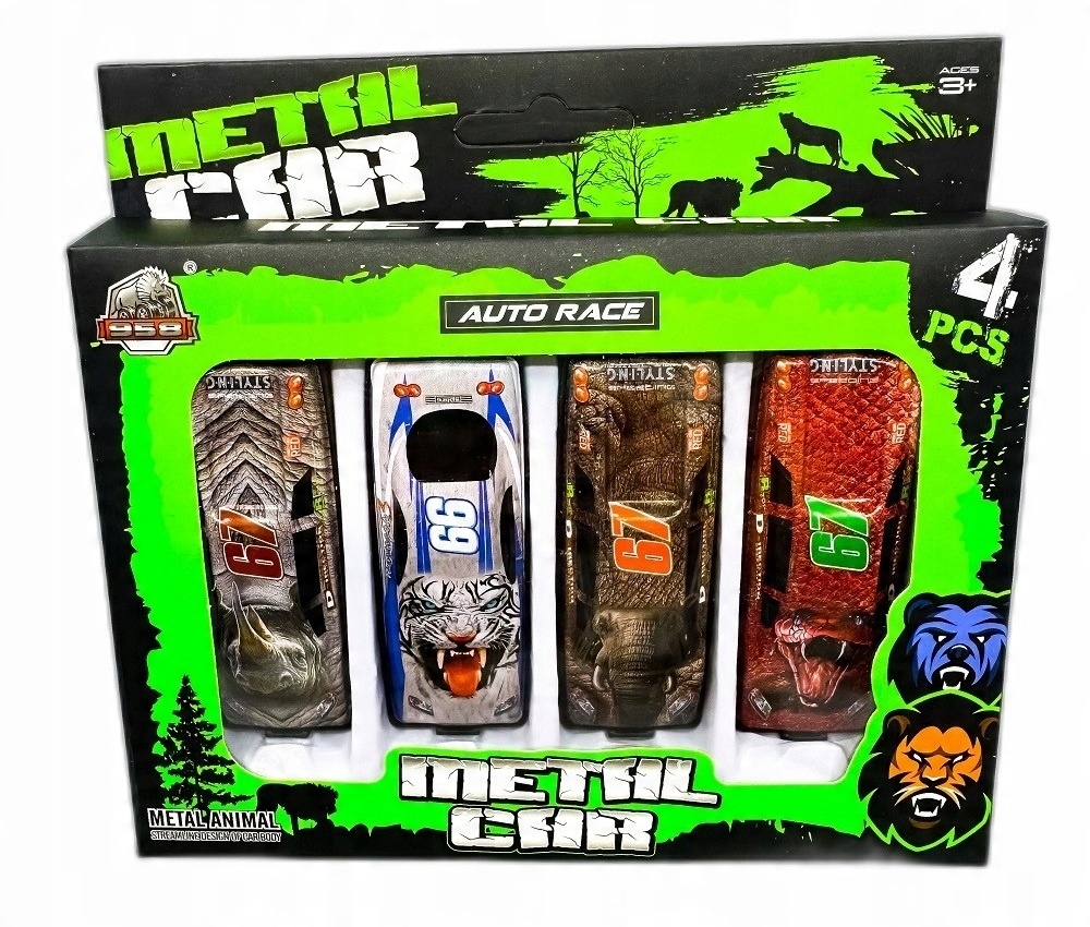 Zawartość zestawu: 4 autka ze zwierzęcymi motywami