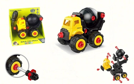 AUTO BETONIARKA DO SKRĘCANIA, pak 24 model z serii Składanych Pojazdów Budowlanych, betoniarka do rozkręcenia i skręcenia, wymiary pojazdu: 13 x 19 x 15 cm wymiary opakowania: 20 x 13,5 x 19 cm