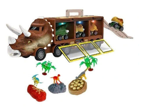 AUTO DINOZAUR -LAWETA Z DINOZAURAMI BRĄZOWE KARTON PAK 48/24 ŚWIATŁO, DŹWIĘK, WYRZUTNIA w zestawie trzy auta, trzy dinozaury, drzewka i skały Wymiar Opakowania: 37,5 x 10 x 16,5 cm