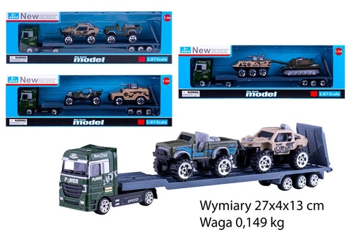 AUTO LAWETA METAL + 2 POJAZDY WOJSKOWE KARTON NIEBIESKI pak 180/90 Waga 0,149 kg