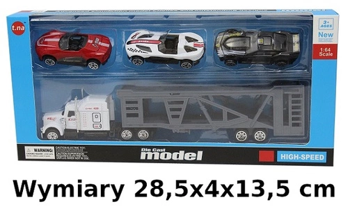 AUTO LAWETA METAL + 3 AUTA SPORTOWE KARTON NIEBIESKI PAK 60/120 Wymiary 28,5x4x13,5 cm