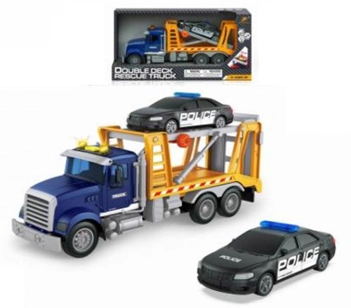 AUTO LAWETA POLICYJNA Z RADIOWOZEM, pak 24, laweta ze światłem i dźwiękiem. W zestawie laweta i auto osobowe, zawiera 3x baterie AG13, wymiar pudełka: 37 x 11,5 x 19 cm