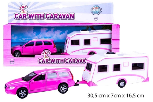 AUTO MET. VOLVO RÓŻOWE Z CAMPINGIEM KARTON