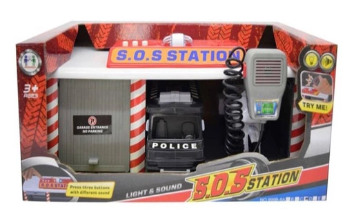 BAZA POLICYJNA GARAŻ Z AUTEM POLICYJNYM RADIOWOZEM Z RADIEM