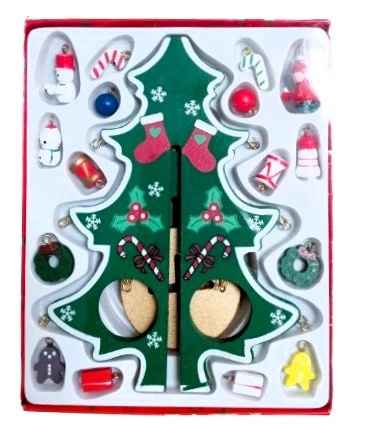 CHOINKA OZDOBA ŚWIĄTECZNA SKŁADANA, pak 72 ozdoba stołowa- choinka z bombkami na podstawce,
