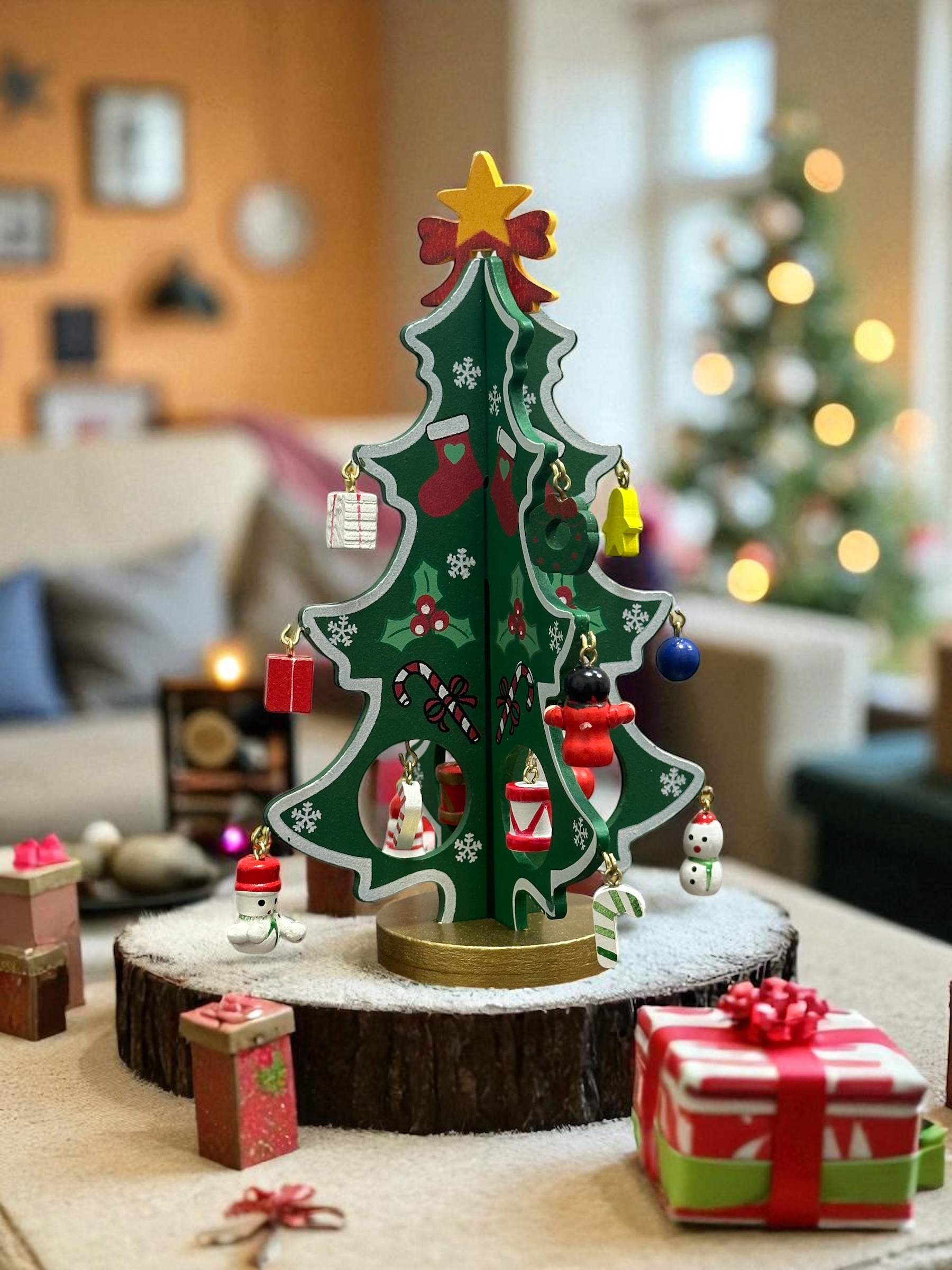 Choinka Świąteczna Składana Ozdobna Na Podstawce Dekoracja Stołowa