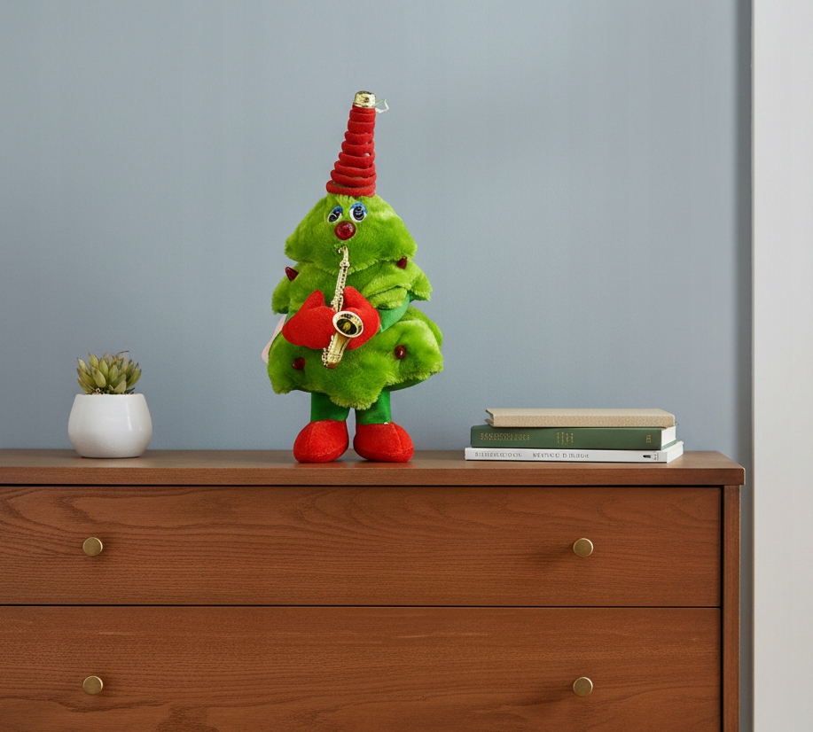 - Choinka w świątecznym wydaniu z saksofonem, która tańczy, gra kolędy i świeci lampką oraz nosem. Idealna ozdoba i zabawka na Boże Narodzenie.