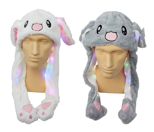 CZAPKA KRÓLICZEK ŚWIECĄCA , RUCHOME USZY BIAŁY SZARY /120