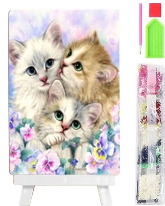 DIAMENTOWA 15X20 CM MOZAIKA KOTKI*3 W KWIATACH +SZTALUGA PAK 200
