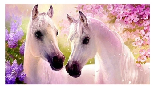 Diamentowa Mozaika Białe Konie Portret 30X40 Cm Kreatywne Diamenty