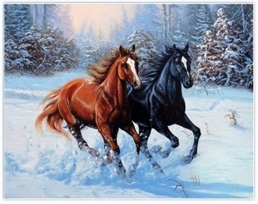 Diamentowa Mozaika Biegnące Konie Na Śniegu 30x40Cm Kreatywne Diamenty