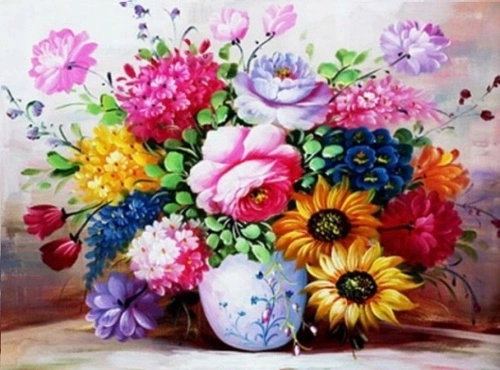 Diamentowa Mozaika Bukiet Kolorowych Kwiatów Haft Kreatywny 30x40 Cm