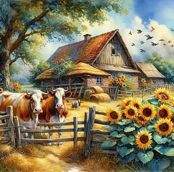 Diamentowa Mozaika Dom Na Wsi Farma Krów 30x40 Cm Kreatywne Diamenty