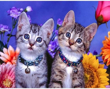 Diamentowa Mozaika Dwa Koty Z Obrożą Z Dzwoneczkiem 30x40Cm Kreatywne