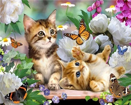 Diamentowa Mozaika Dwa Małe Kotki Z Motylkami 30x40Cm Kreatywne Diamenty
