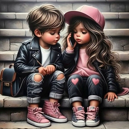Diamentowa Mozaika Dziewczynka I Chłopiec Na Schodach 30x40 Cm