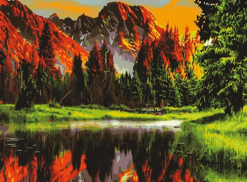 Diamentowa Mozaika Góry Nad Stawem Jesienią 30X40 Cm Kreatywne Diamenty