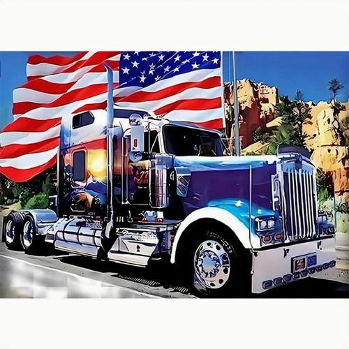Diamentowa Mozaika Haft Auto Amerykańskie Na Tle Flagi 30x40cm
