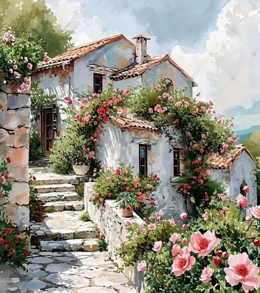 Diamentowa Mozaika Haft Diamentowy Dom Na Przedmieściach Wśród Kwiatów 30x40