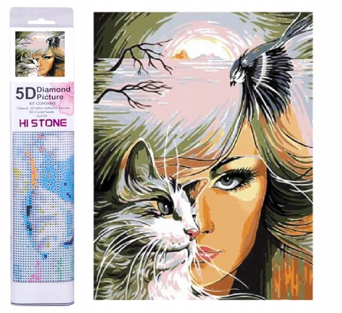 Diamentowa Mozaika Haft Diamentowy Kobieta Kot 30x40