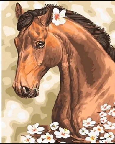 Diamentowa Mozaika Haft Diamentowy Koń Z Kwiatkiem 30x40cm